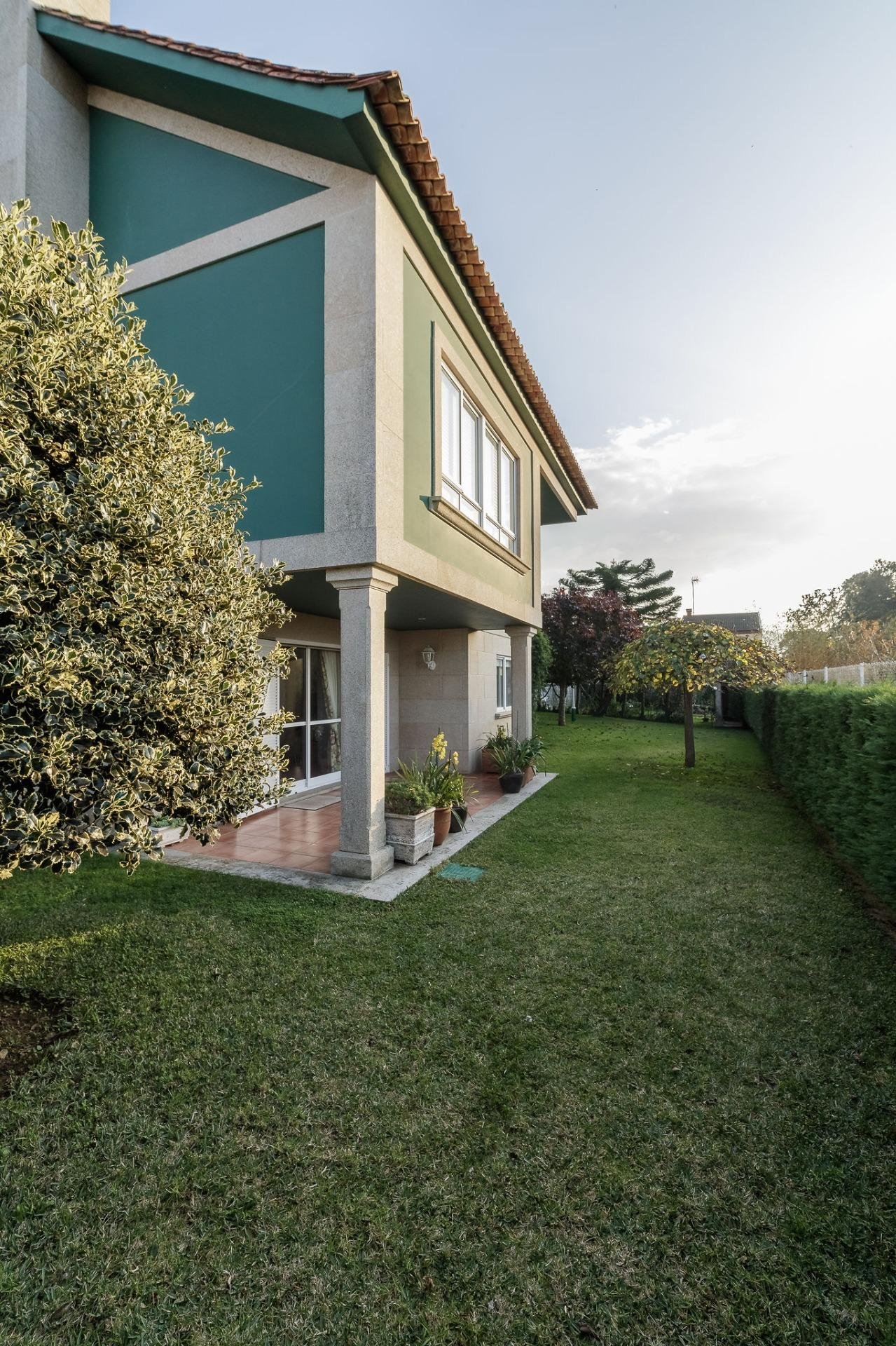La zona exterior permite disfrutar del entorno natural gallego, con jardín y espacios ideales para el descanso o el ocio familiar. Además, dispone de garaje con capacidad para 3 vehículos.